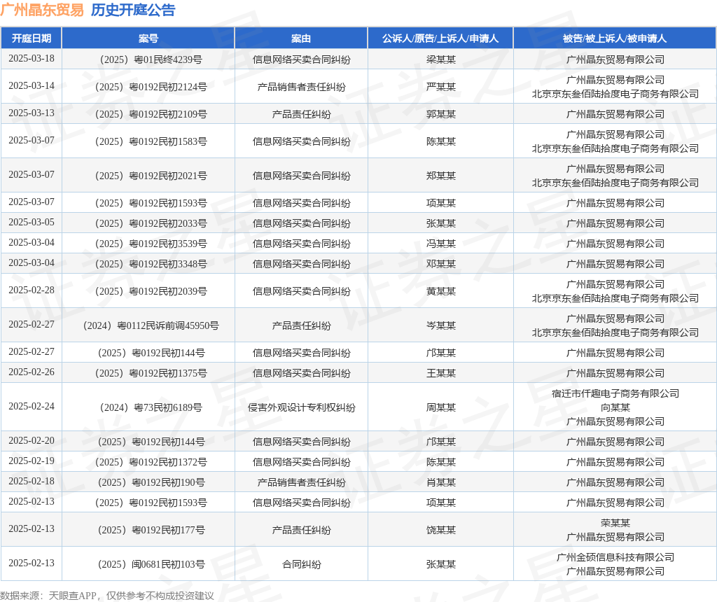 广州晶东贸易作为被告/被上诉人的1起涉及信息网络买卖合同纠纷的诉讼将于2025年2月26日开庭